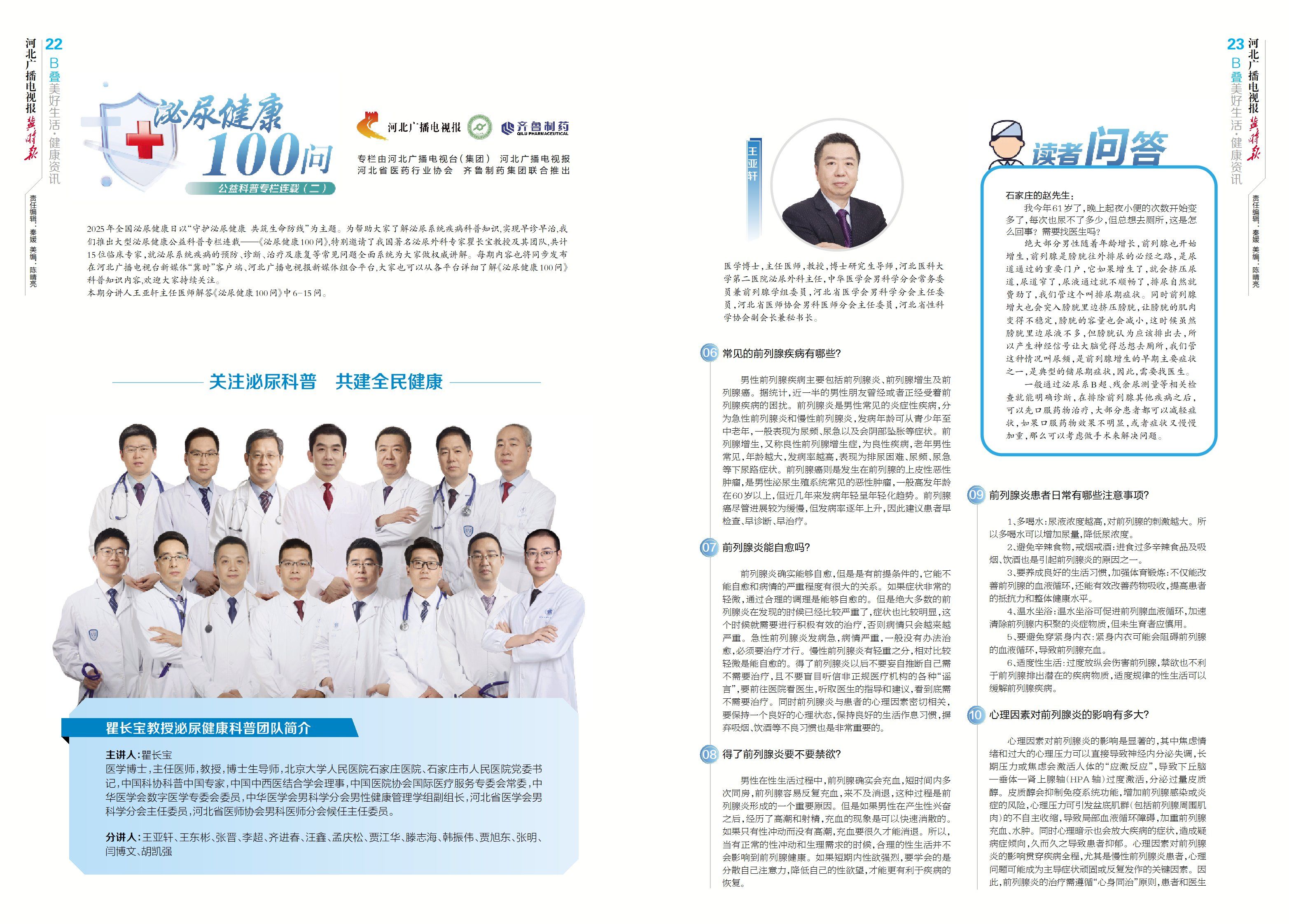 本期分讲人王亚轩主任医师解答《泌尿健康100问》中6-15问。