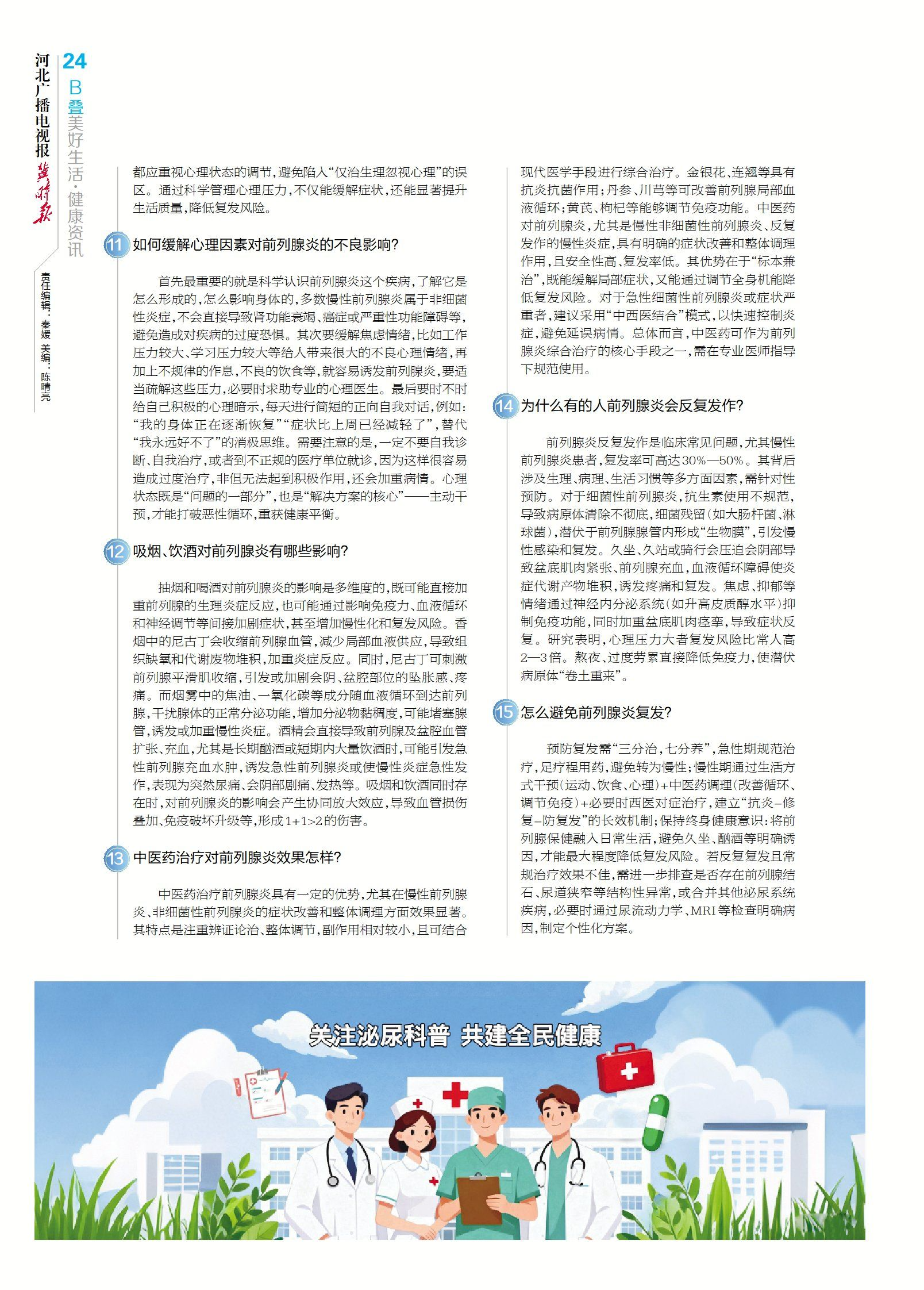 2025年全国泌尿健康日以“守护泌尿健康 共筑生命防线”为主题。为帮助大家了解泌尿系统疾病科普知识,实现早诊早治,我们推出大型泌尿健康公益科普专栏连载——《泌尿健康100问》,特别邀请了我国著名泌尿外科专家瞿长宝教授及其团队,共计15位临床专家,就泌尿系统疾病的预防、诊断、治疗及康复等常见问题全面系统为大家做权威讲解。每期内容也将同步发布在河北广播电视台新媒体“冀时”客户端、河北广播电视报新媒体组合平台,大家也可以从各平台详细了解《泌尿健康100问》科普知识内容,欢迎大家持续关注。