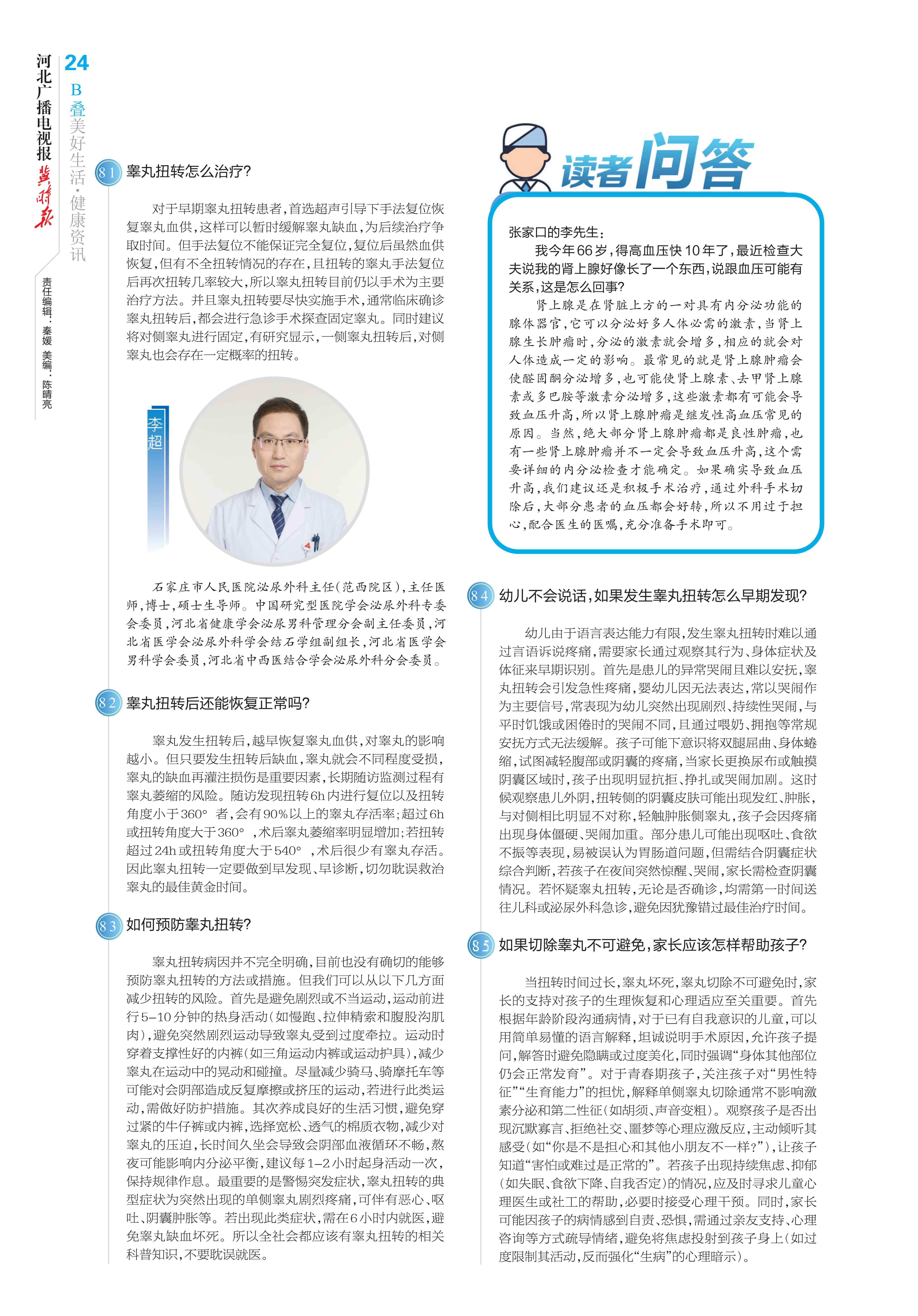 2025年全国泌尿健康日以“守护泌尿健康 共筑生命防线”为主题。为帮助大家了解泌尿系统疾病科普知识,实现早诊早治,我们推出大型泌尿健康公益科普专栏连载——《泌尿健康100问》,特别邀请了我国著名泌尿外科专家瞿长宝教授及其团队,共计15位临床专家,就泌尿系统疾病的预防、诊断、治疗及康复等常见问题全面系统为大家做权威讲解。每期内容也将同步发布在河北广播电视台新媒体“冀时”客户端、河北广播电视报新媒体组合平台,大家也可以从各平台详细了解《泌尿健康100问》科普知识内容,欢迎大家持续关注。