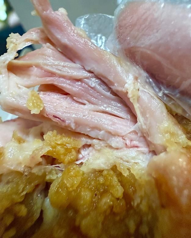 除了以上三种情况,冷冻储存后鸡肉色泽发暗的现象也常常引发关注。这背后的原因在于,肌红蛋白在冷冻中氧化为棕褐色高铁肌红蛋白(-18℃储存 3 个月,红度a*值自然衰减15%~40%),冰晶破坏肌肉结构,导致光反射减弱。冷冻鸡肉色泽变化不影响安全性,解冻后烹饪可正常食用。