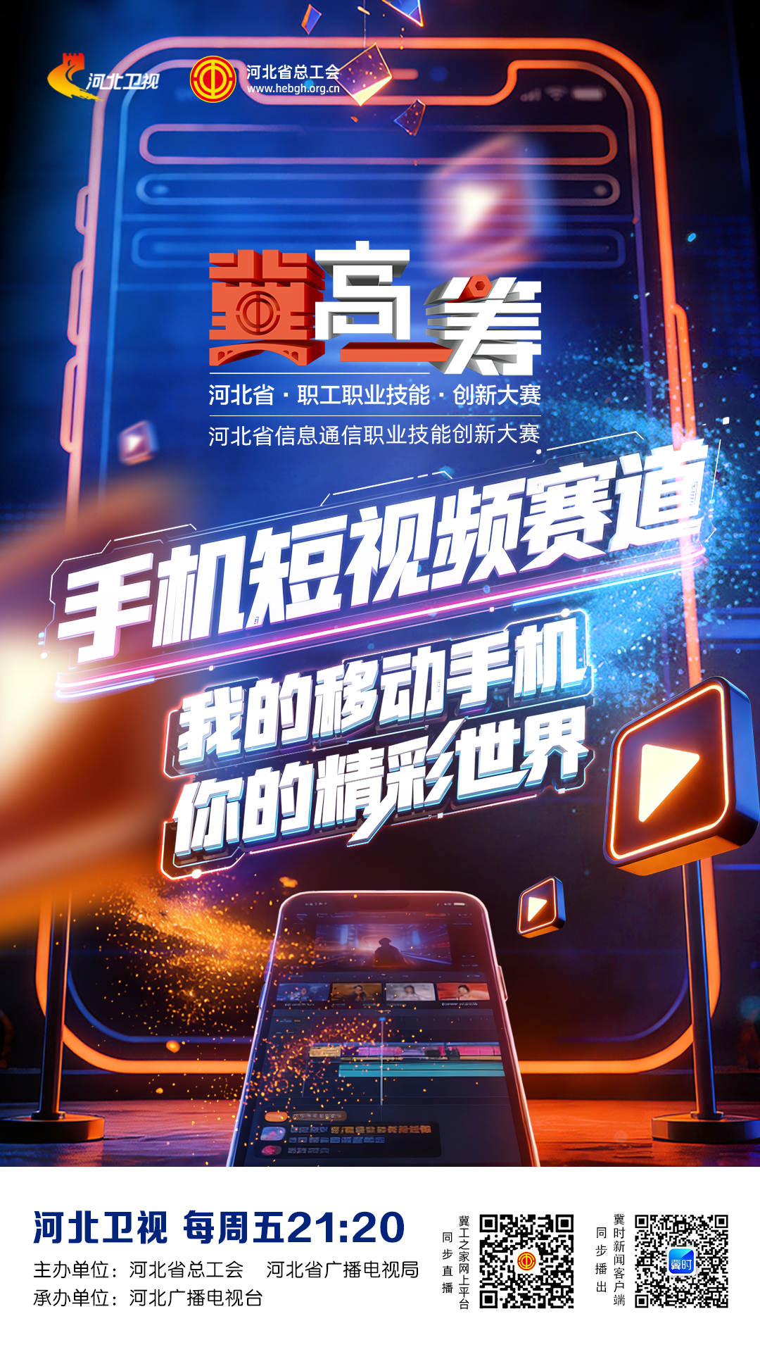 “我的移动手机,你的精彩世界”,由河北省总工会、河北省广播电视局联合主办,河北广播电视台承办的河北省信息通信职业技能创新大赛——手机短视频赛道2月27日起正式开赛!选手们将围绕新闻话题进行跟拍创作、创意剪辑等技能比拼,用画面讲述河北风采,用作品展现匠心传承,用镜头记录平凡温暖,用创意传递生活正能量!