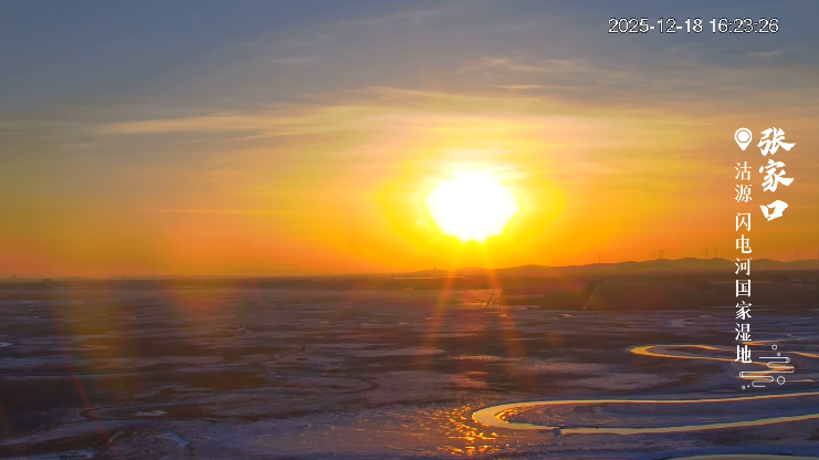 回看·美丽河北慢直播·日落拾光丨来一场冰与河的“金色交响...