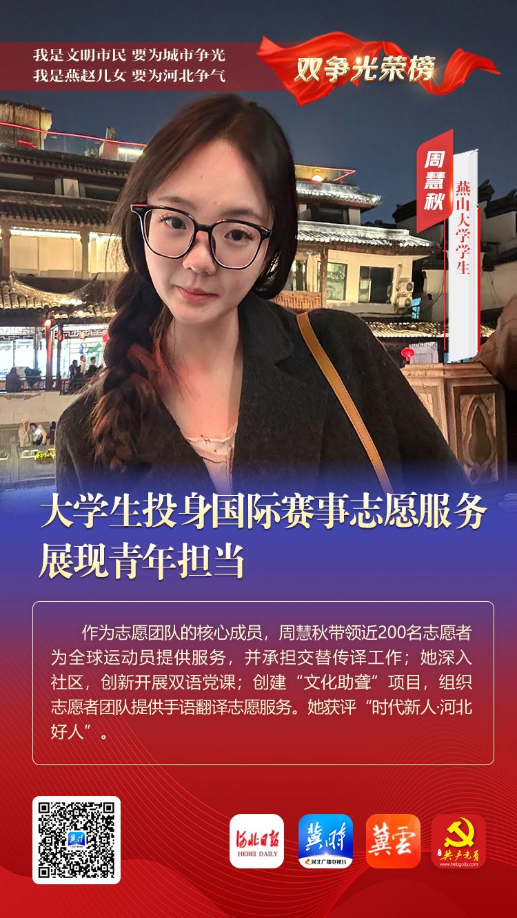 双争光荣榜丨周慧秋:大学生投身国际赛事志愿服务 展现青年担当