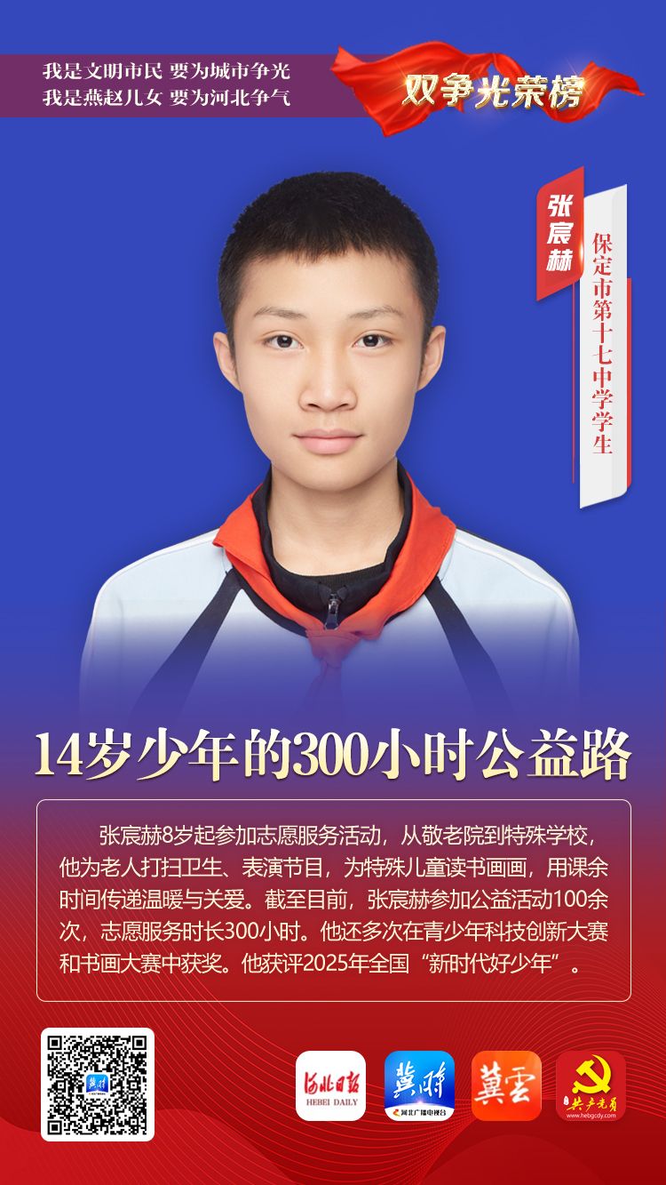 双争光荣榜丨张宸赫:14岁少年的300小时公益路